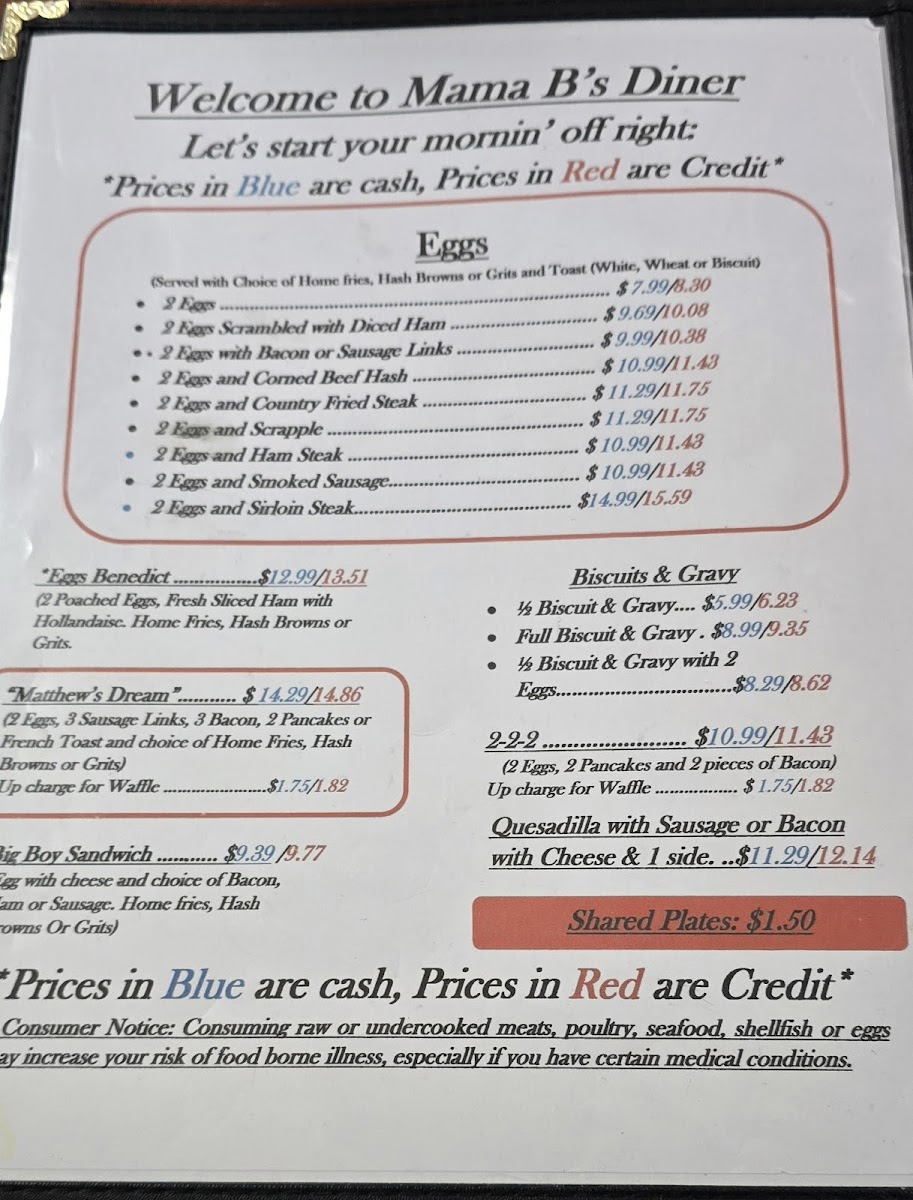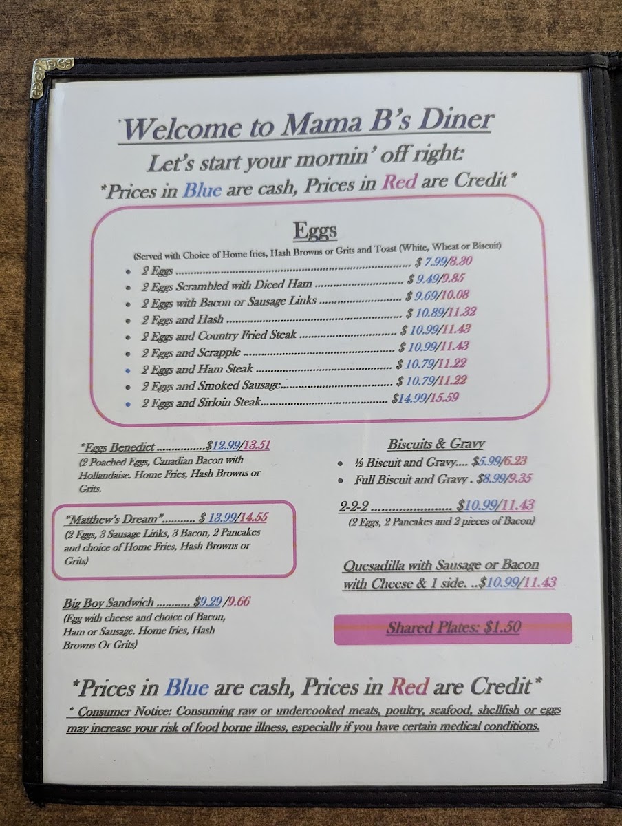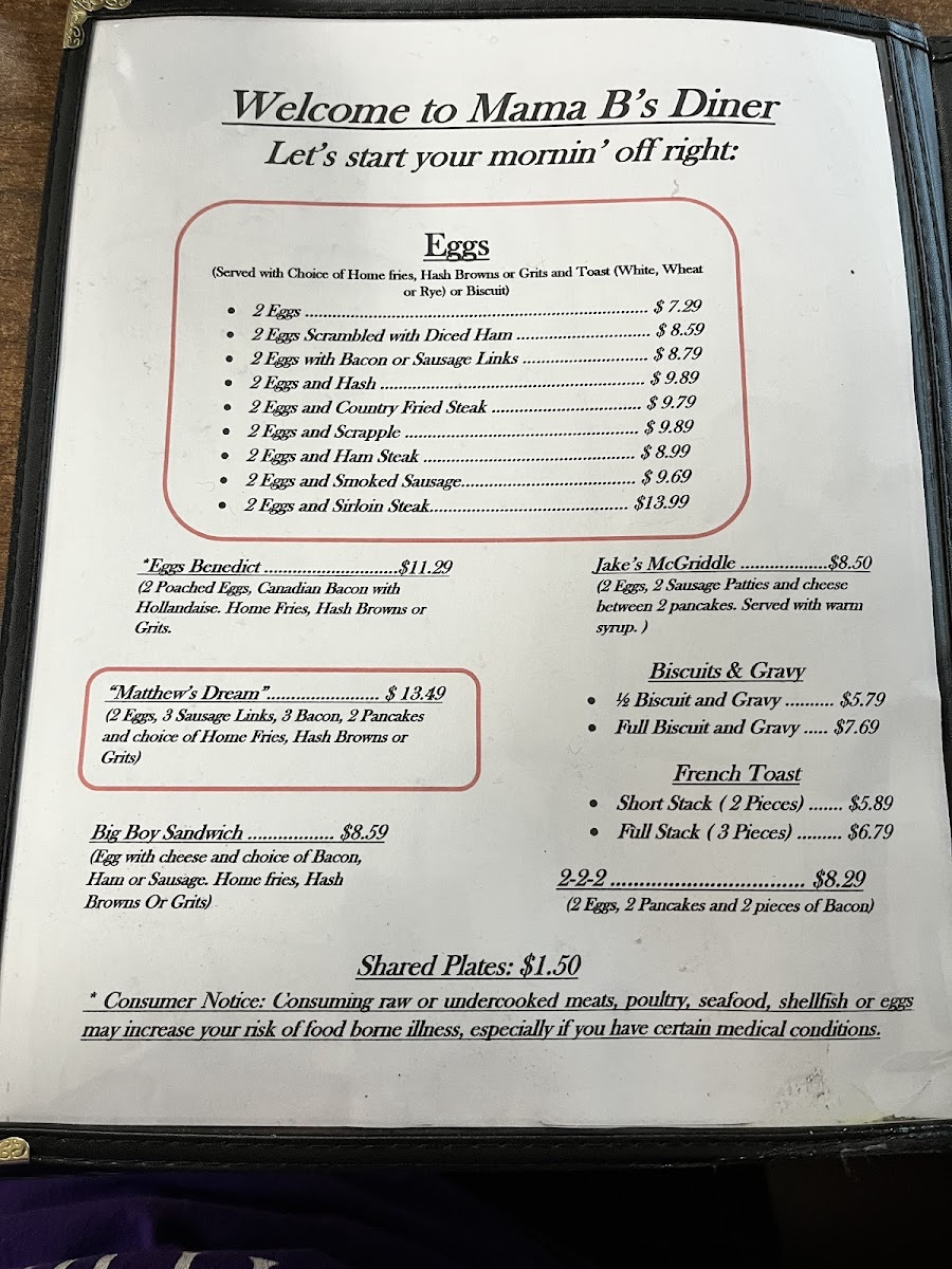 Mama B's Diner Menu