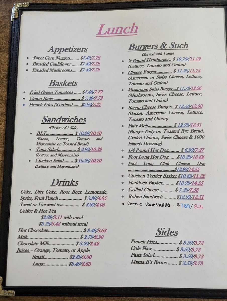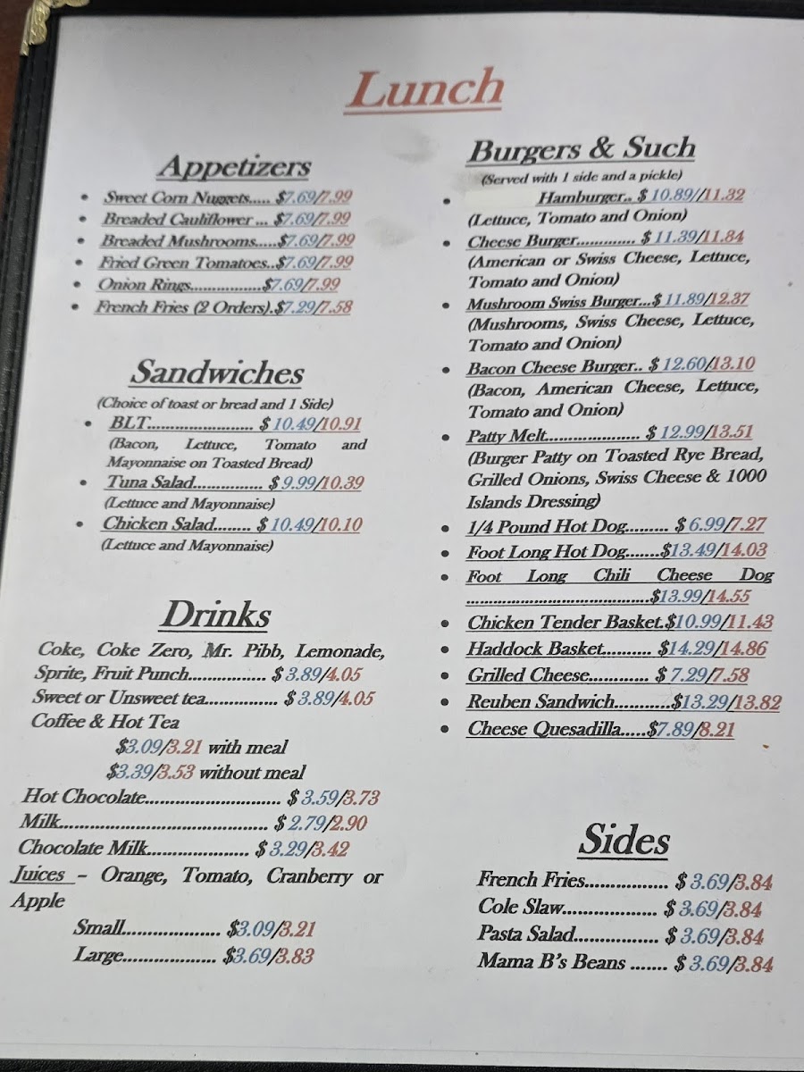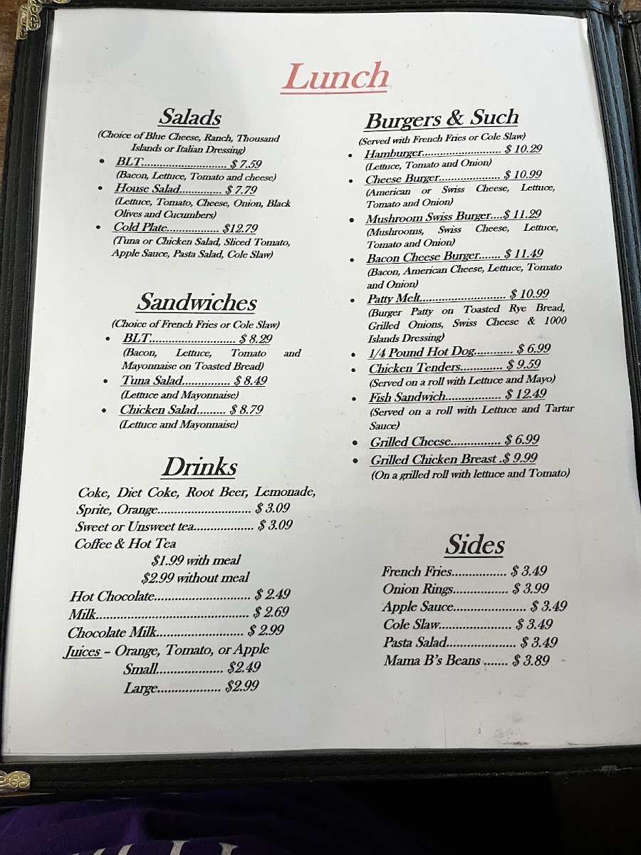 Mama B's Diner Menu
